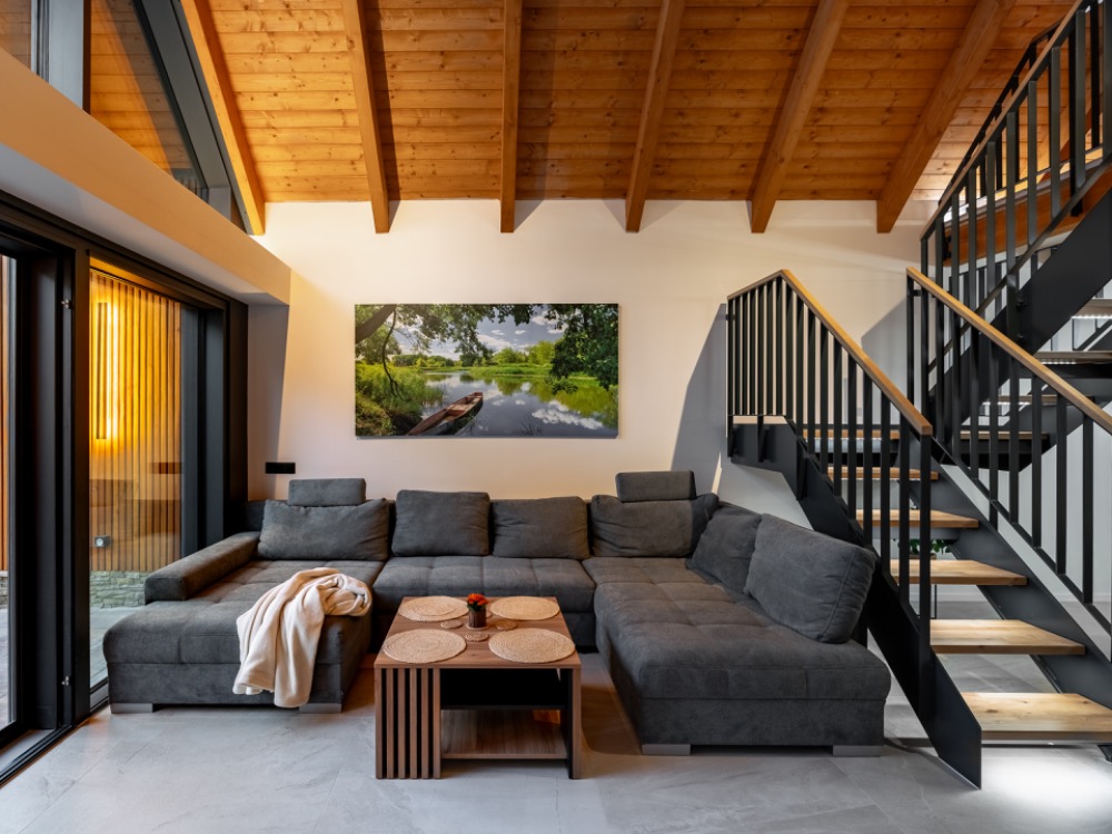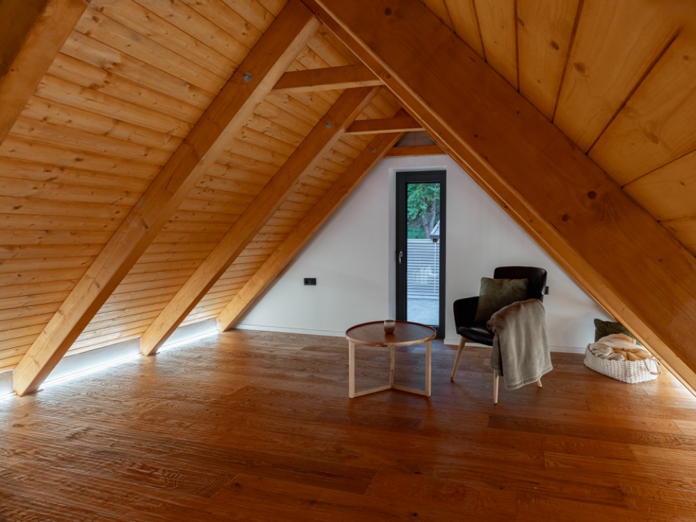 Součástí vily je krásná galerie s dechberoucím výhledem na Lipenskou přehradu. Tento prostor je ideální pro relaxaci nebo chvíle klidu, kdy si můžete užívat pohled na vodu a okolní přírodu, aniž byste museli opustit pohodlí interiéru. Galerie poskytuje perfektní místo pro čtení, meditaci, nebo prostě jen pro sledování západu slunce a změny světla na hladině přehrady.