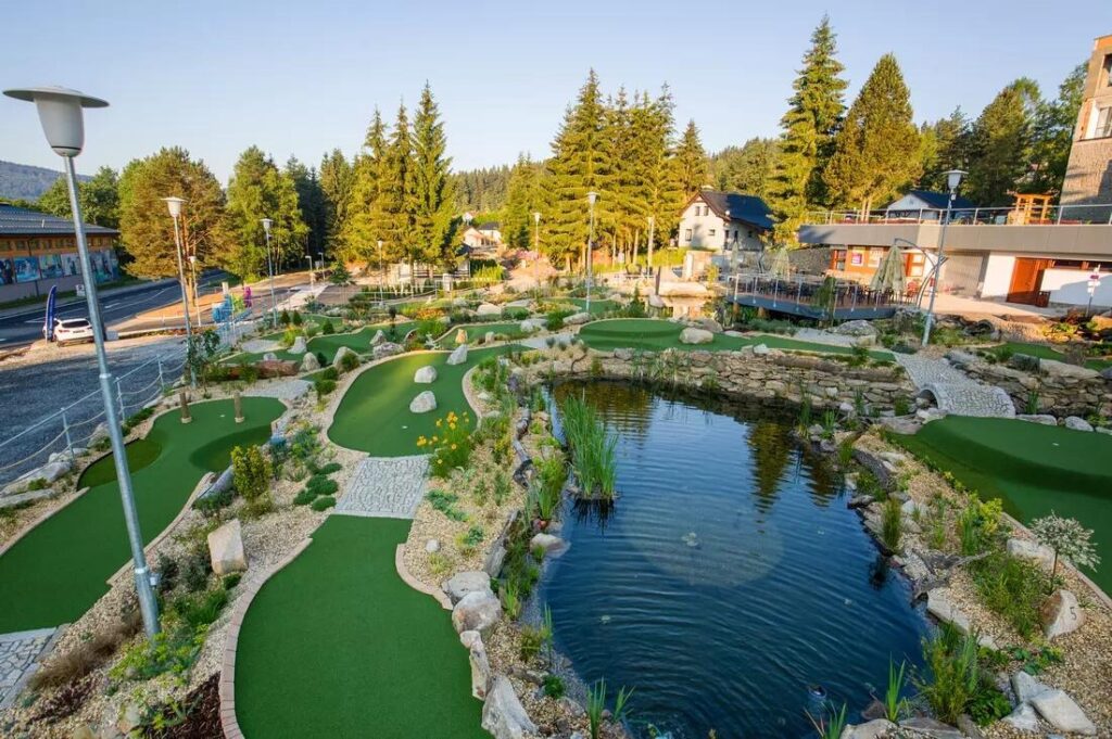 Užijte si golf v překrásné přírodní krajině s výhledy na Lipno. Hřiště nabízí kvalitní zázemí, příjemnou atmosféru a možnosti občerstvení i tréninku. Vhodné pro rodiny, rekreační hráče i zkušené golfisty. Zelená plocha u jezera je ideální pro spojení sportu a relaxace.